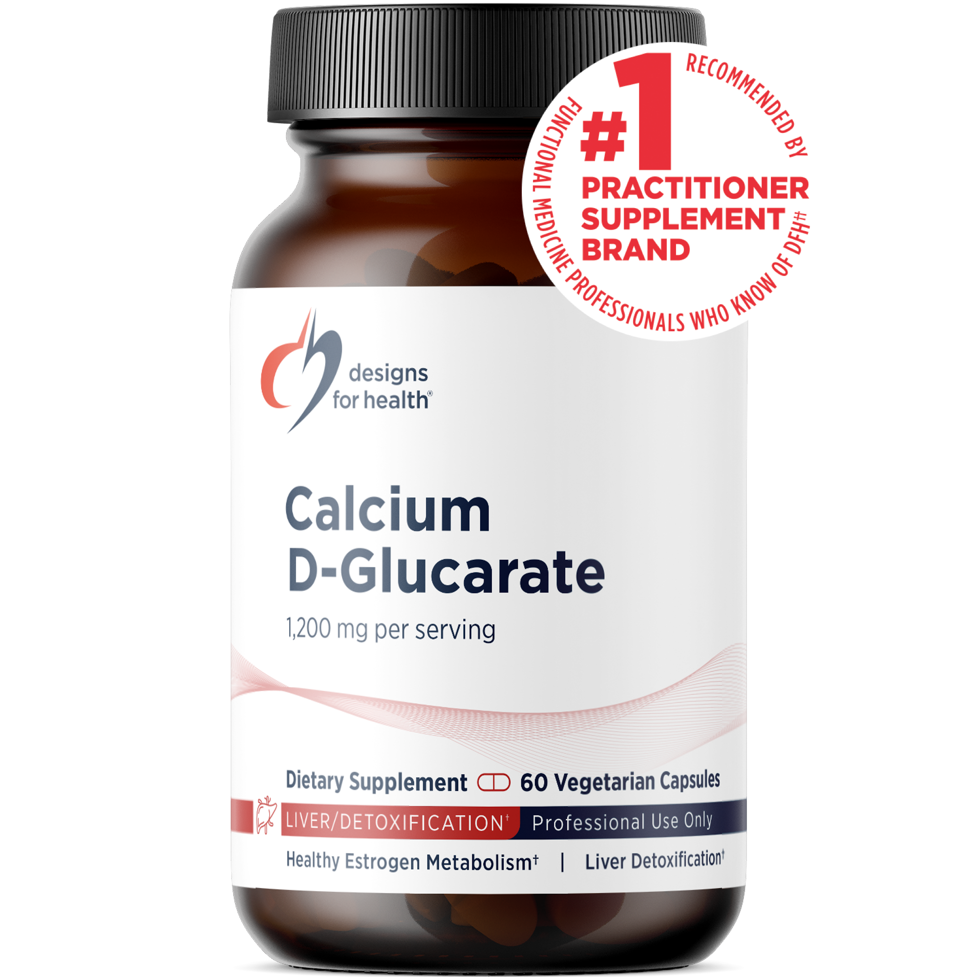 Contains 150 mg of calcium (from Calcium D‑Glucarate USP 1.2 g) per 2‑capsule serving.