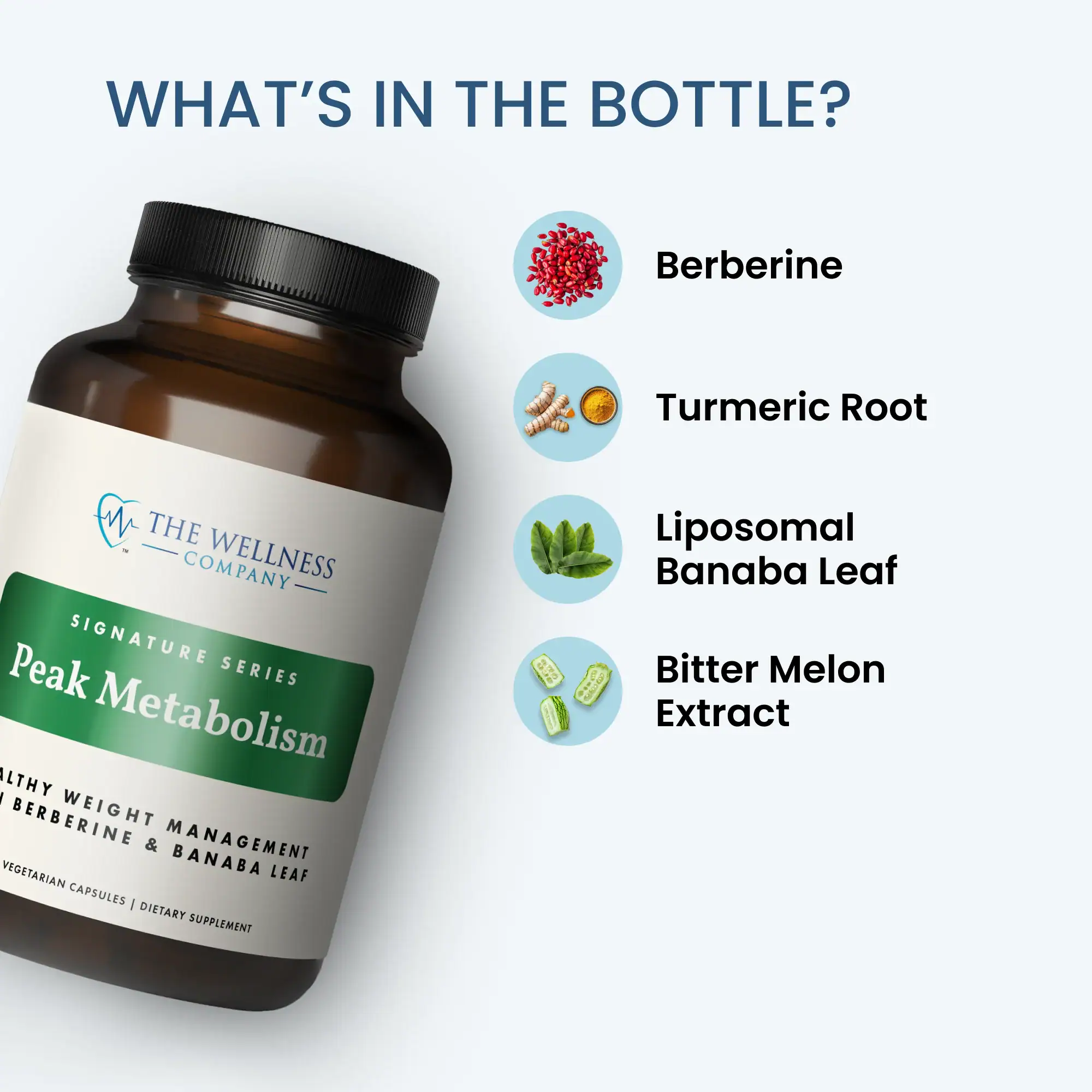 Peak Metabolism by TWC is a metabolic health formula combining targeted nutrients, botanical compounds, and metabolic cofactors that support healthy insulin sensitivity, blood sugar balance, and efficient fat metabolism for sustained energy and healthy body composition.