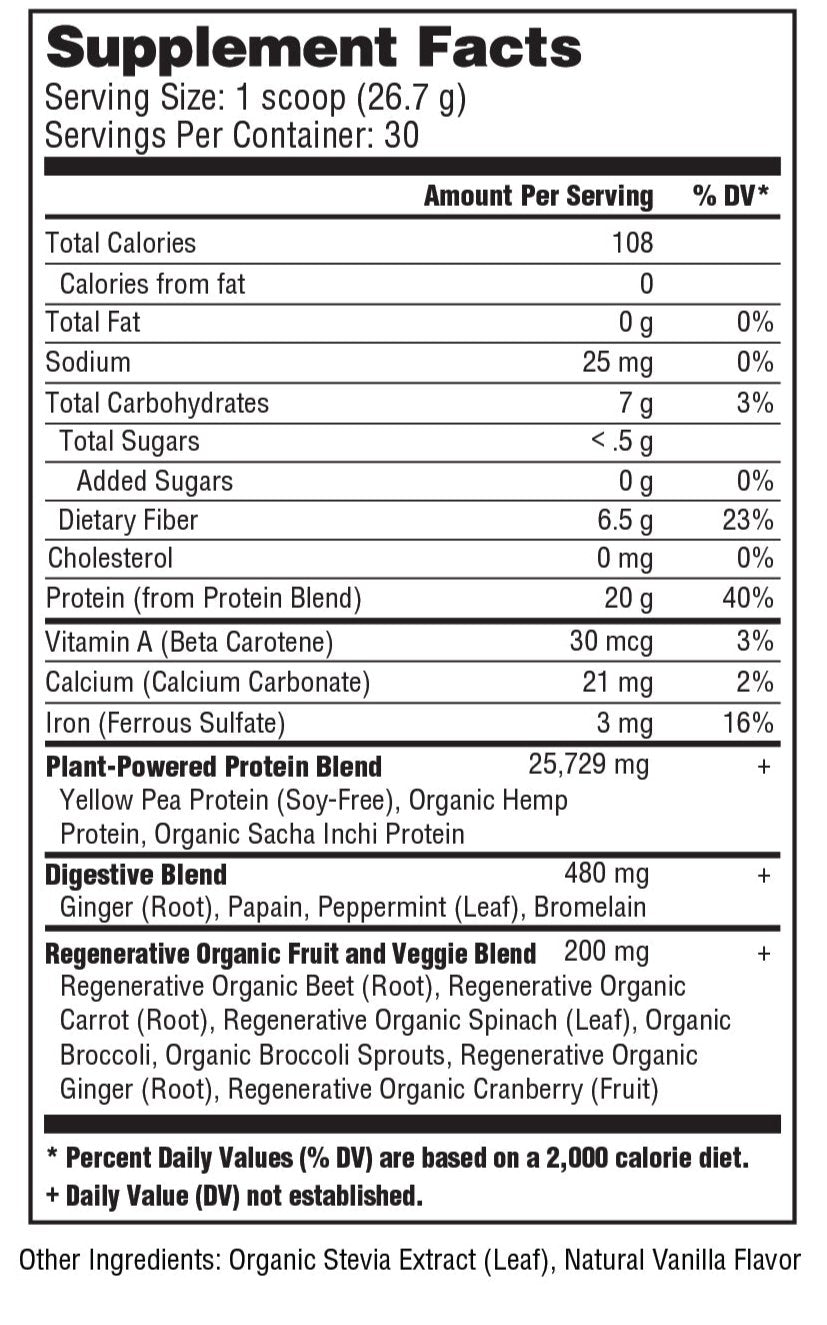 - Fortified with regenerative organic fruits and vegetables for added phytonutrient support