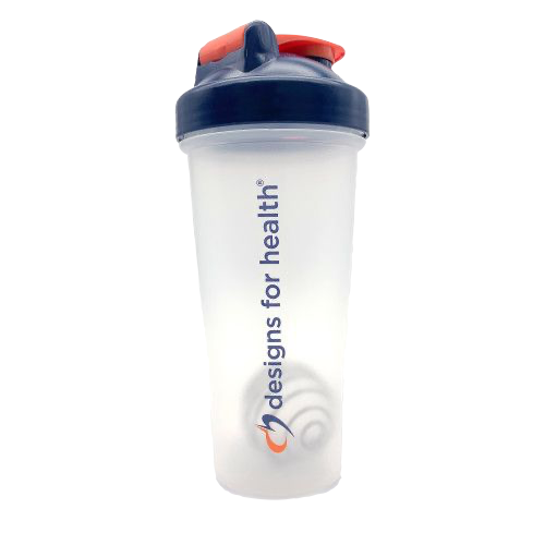 Design for Health’s sturdy plastic shaker bottle is perfect for mixing your favorite drink at home or on the go.